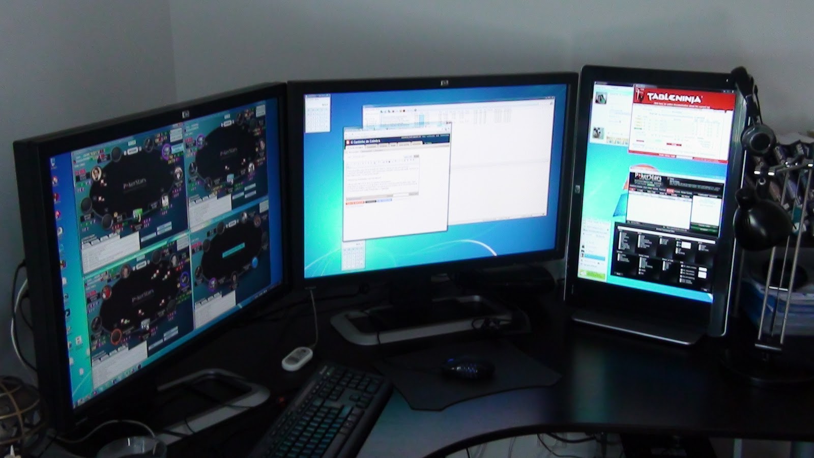 Ontem joguei 222 jogos em cerca de 8h, acabei o dia exausto como já não acabava há algum tempo. Joguei 20-24 mesas em simultâneo em TILE! Meti 12 em cada um dos meus monitores de 30′ e acrescentei o meu de 24′ na vertical para meter o lobby da PokerStars e o TableNinja. A PokerStars agora permite ajustar as janelas num só monitor, então uso essa opção, meto 12 num dos ecrãs e faço control+9 para ficar tudo alinhado, é fantástico!
