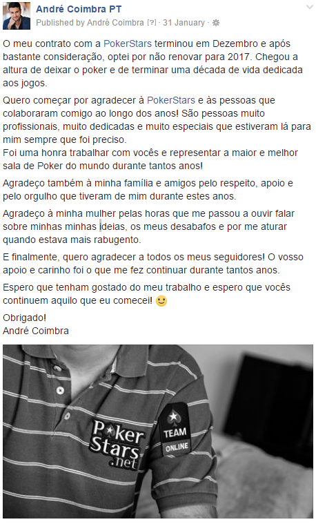 Algo que eu me apercebi recentemente é que é difícil olhar para trás e entender onde é que terminava “o André” e começava “O jogador profissional de Poker”.